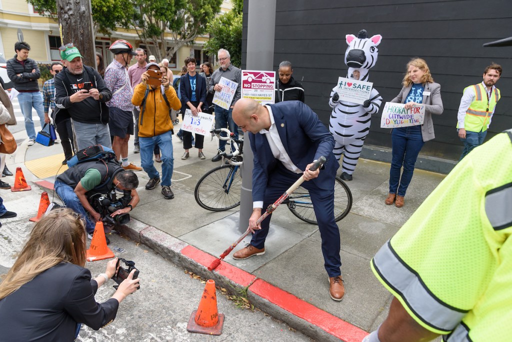 District 5 Supervisor Bilal Mahmood Painting Curb During Press Conference for Daylighting in District 5 | July 28, 2025
